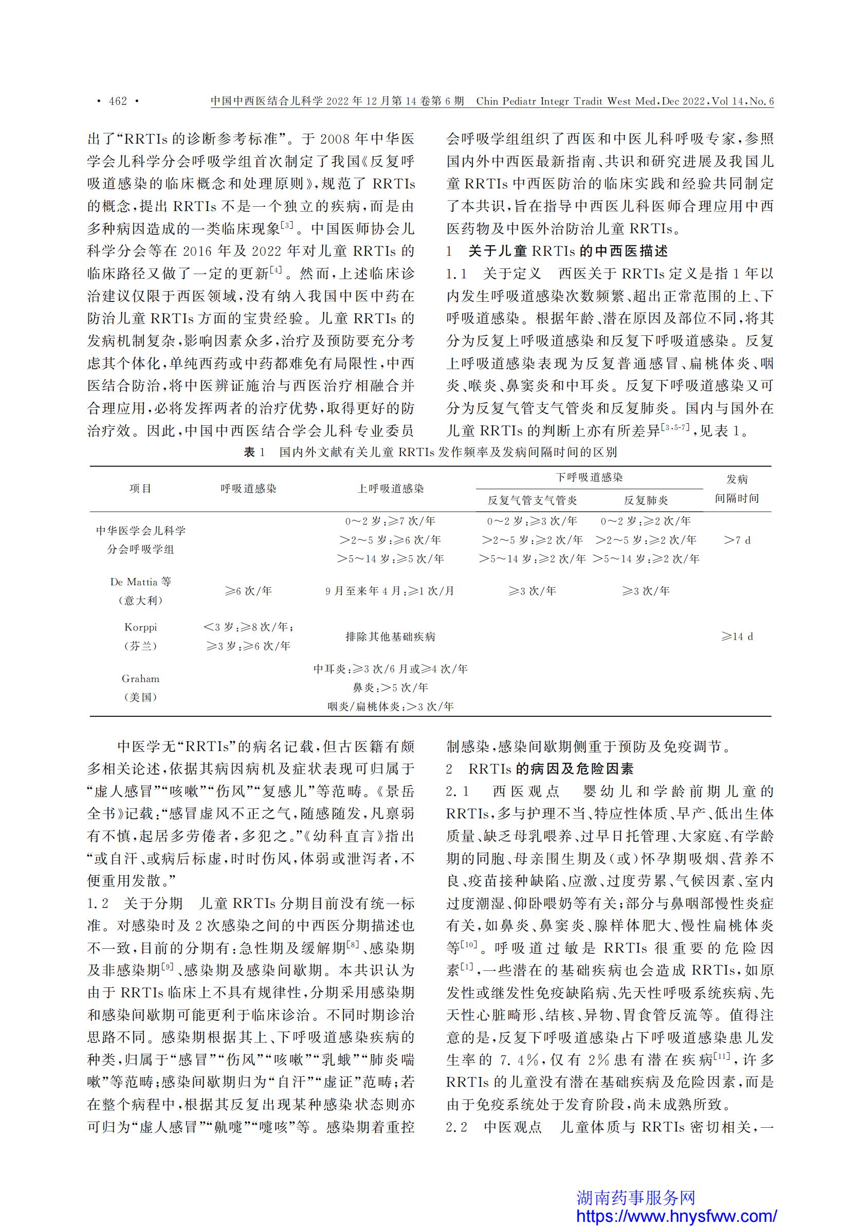 中西医结合防治儿童反复呼吸道感染专家共识