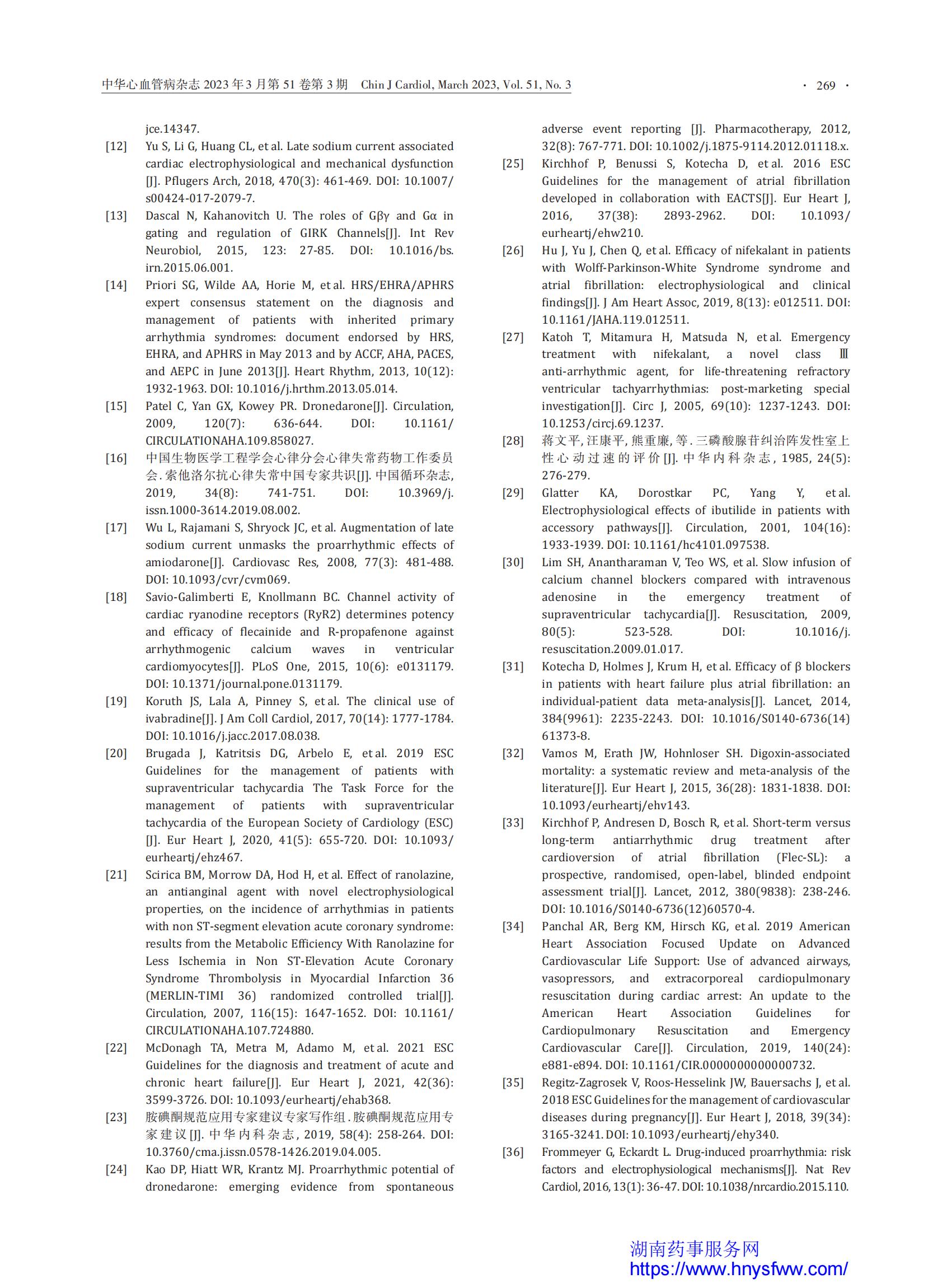抗心律失常药物临床应用中国专家共识(2023年)