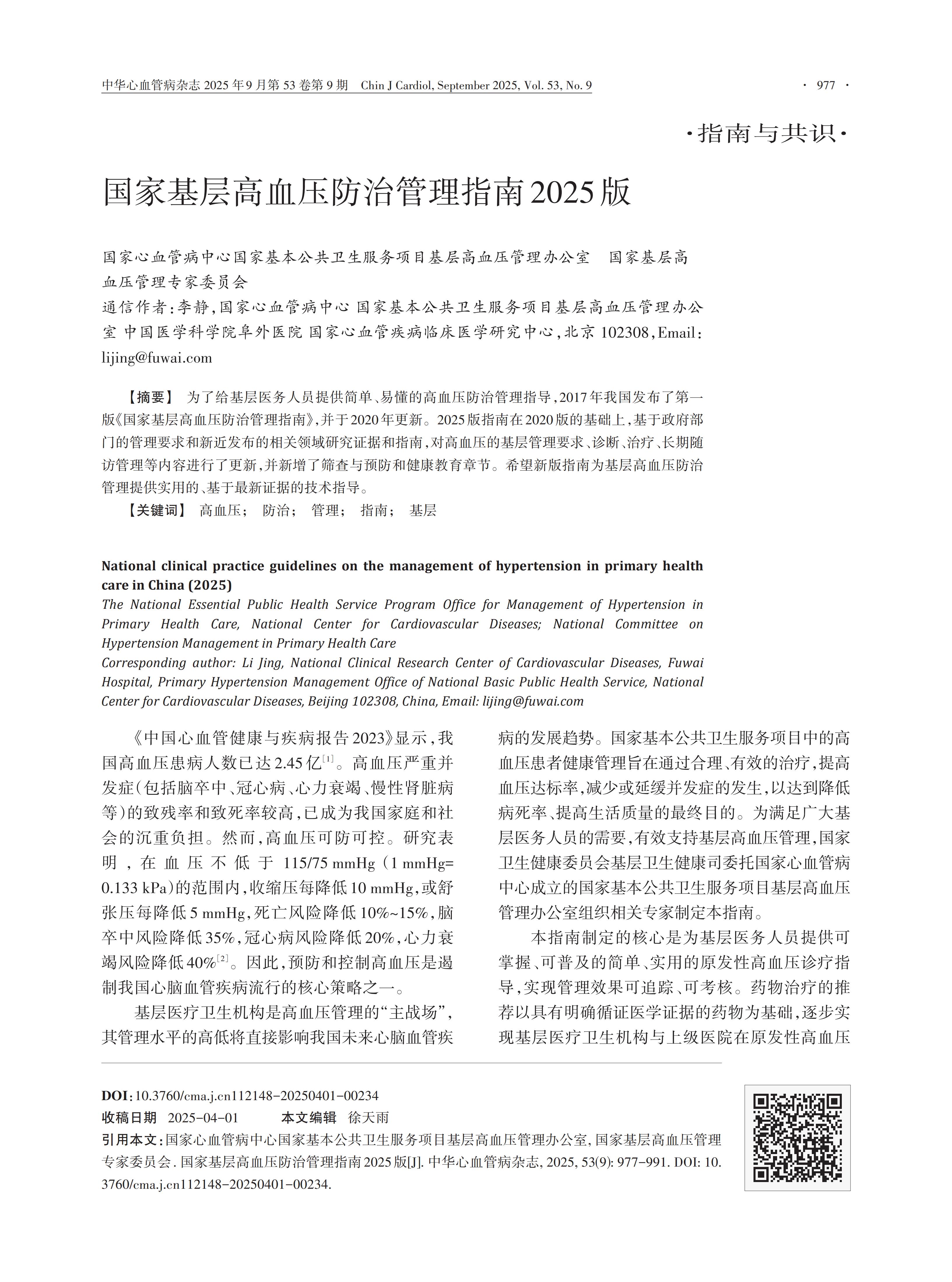 国家基层高血压防治管理指南2025版