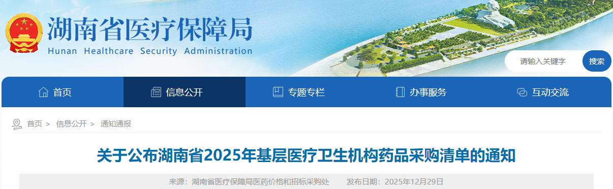 关于公布湖南省2025年基层医疗卫生机构药品采购清单的通知