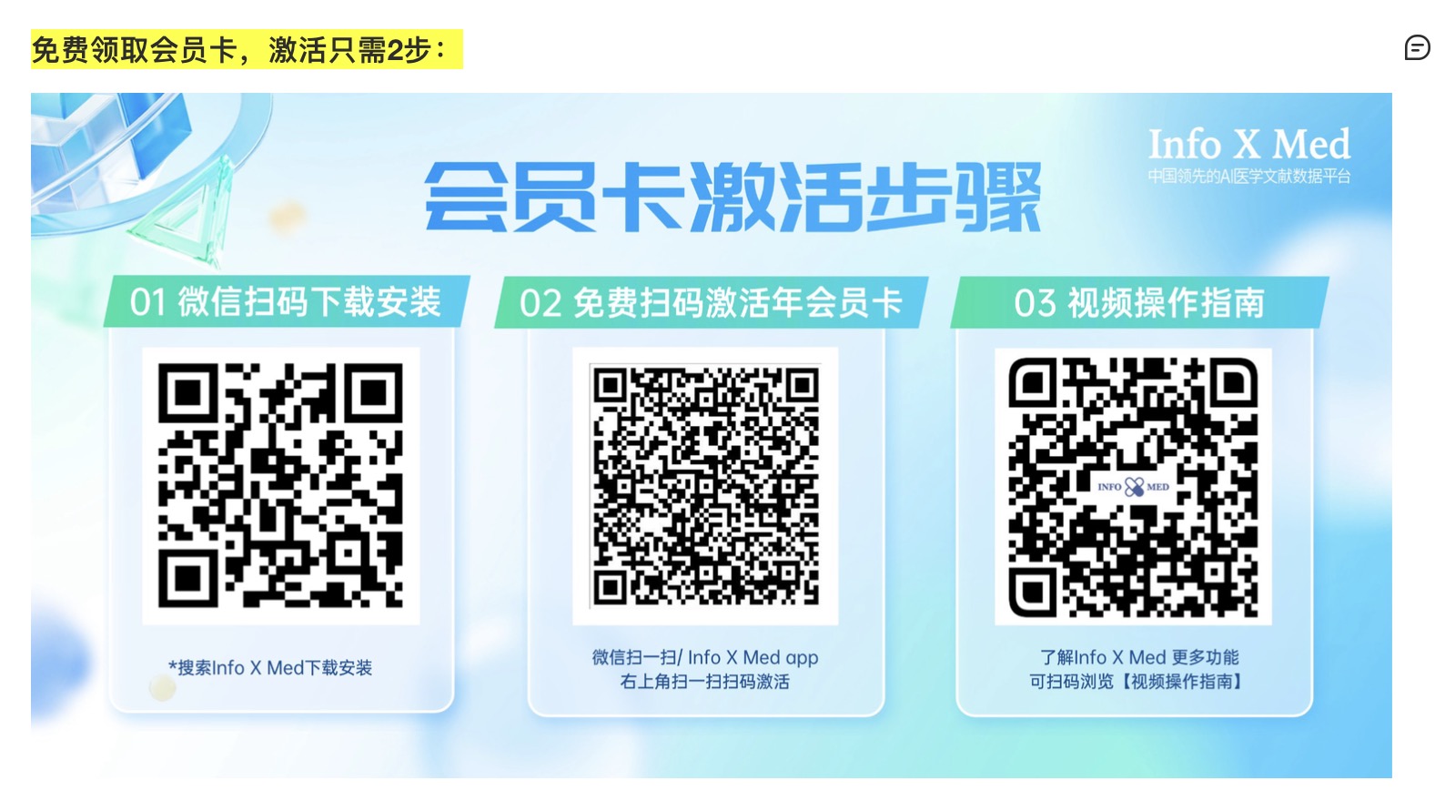 以下二维码,可以分发给科室同事、同行、同学使用,支持反复扫码,激活更多会员。