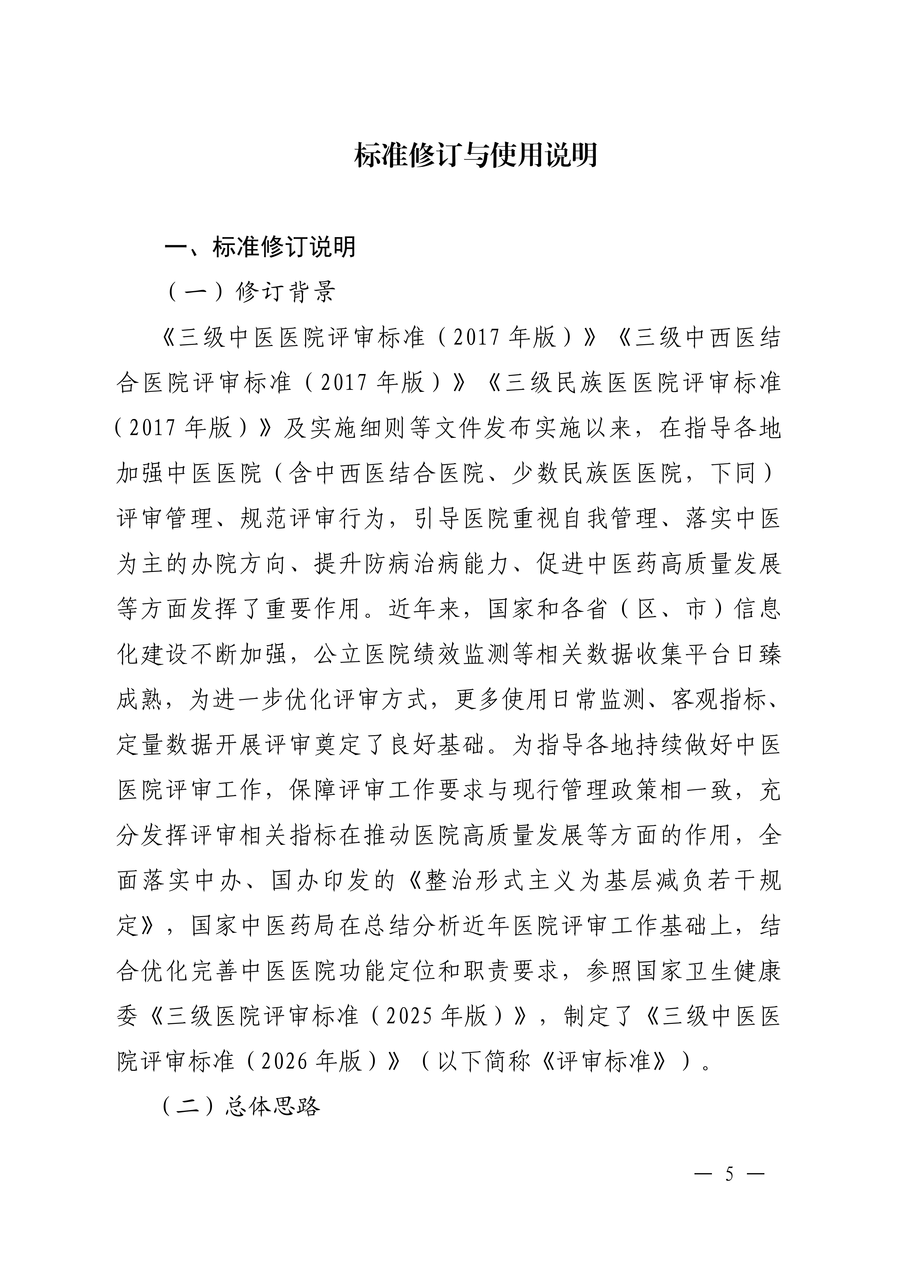 为进一步指导各地做好三级中医医院评审工作,切实发挥医院评审的“指挥棒”作用,引导三级中医医院不断适应高质量发展的新形势新要求,国家中医药局组织对2017年版中医医院、中西医结合医院、少数民族医医院评审标准及其实施细则进行了修订,形成了《三级中医医院评审标准(2026年版)》(以下简称《评审标准》)。