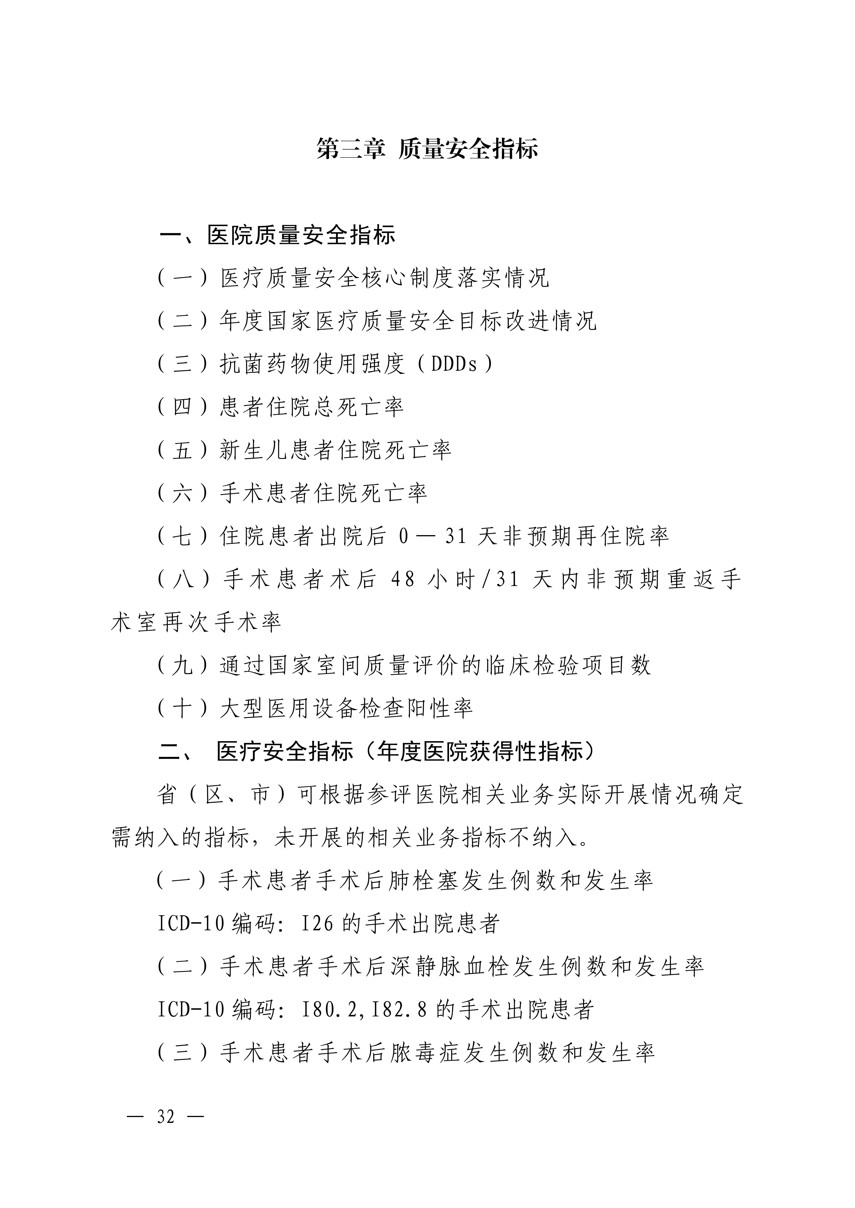 四是注重质量管理,保障群众健康安全。强化质量安全管理,并提出了相应前置要求;设置了质量安全指标、质量控制指标、重点医疗技术临床应用质量控制指标等独立章节,结合国家、省、地(市)质控中心建设等情况,将医疗质量控制相关内容纳入,推动医疗质量安全持续改进,保障医院安全和医疗质量安全。