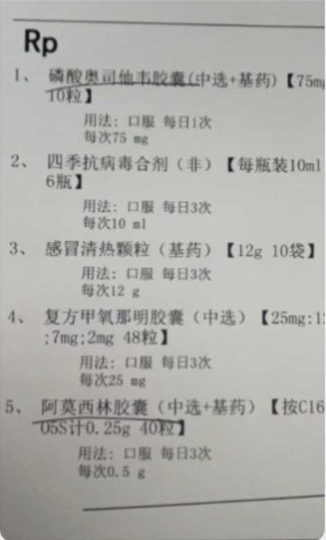 一个基层医疗机构的调剂药师拿出来一张处方,咨询奥司他韦和阿莫西林一起用对吗?我们一起看看这个处方。